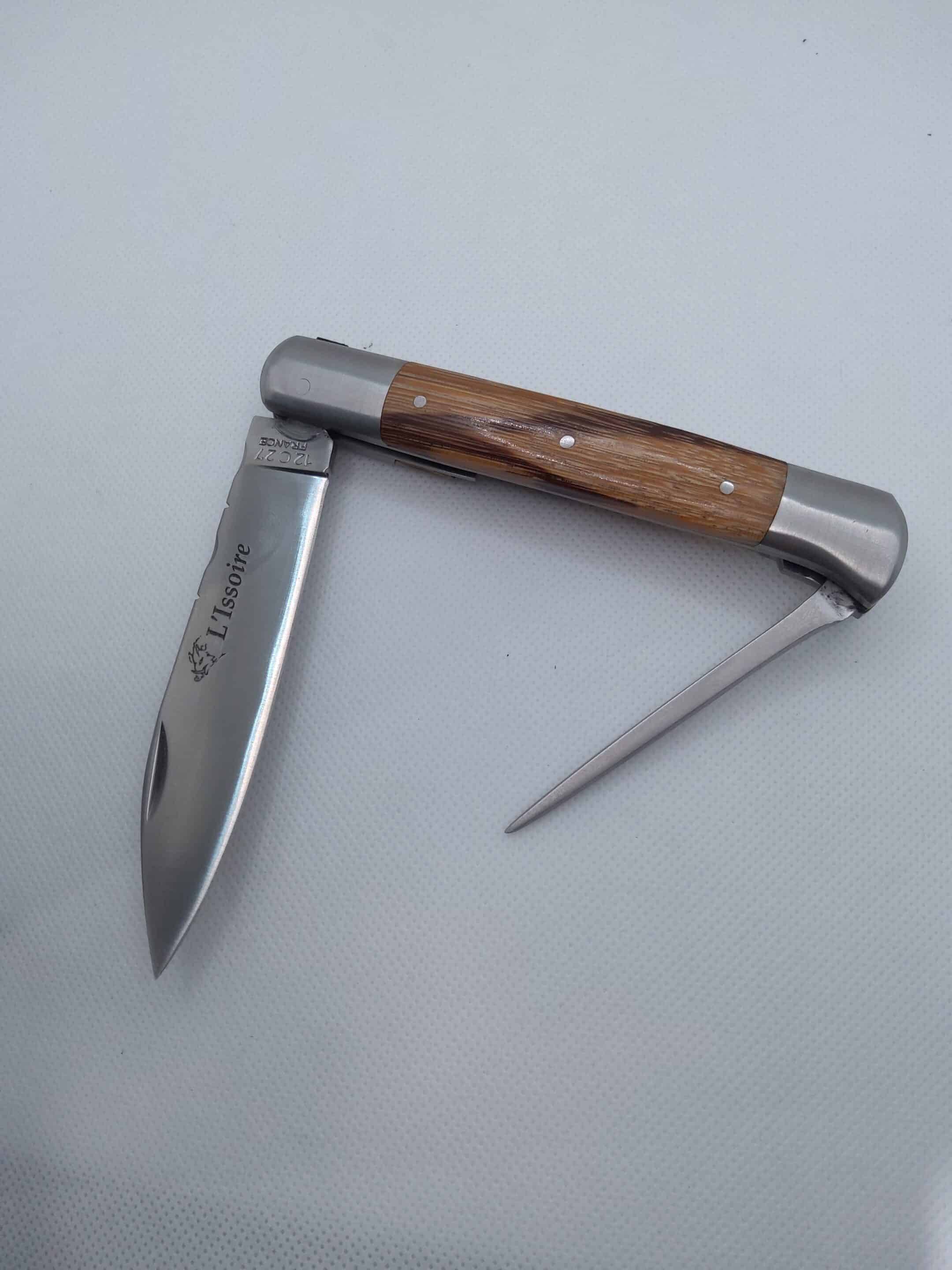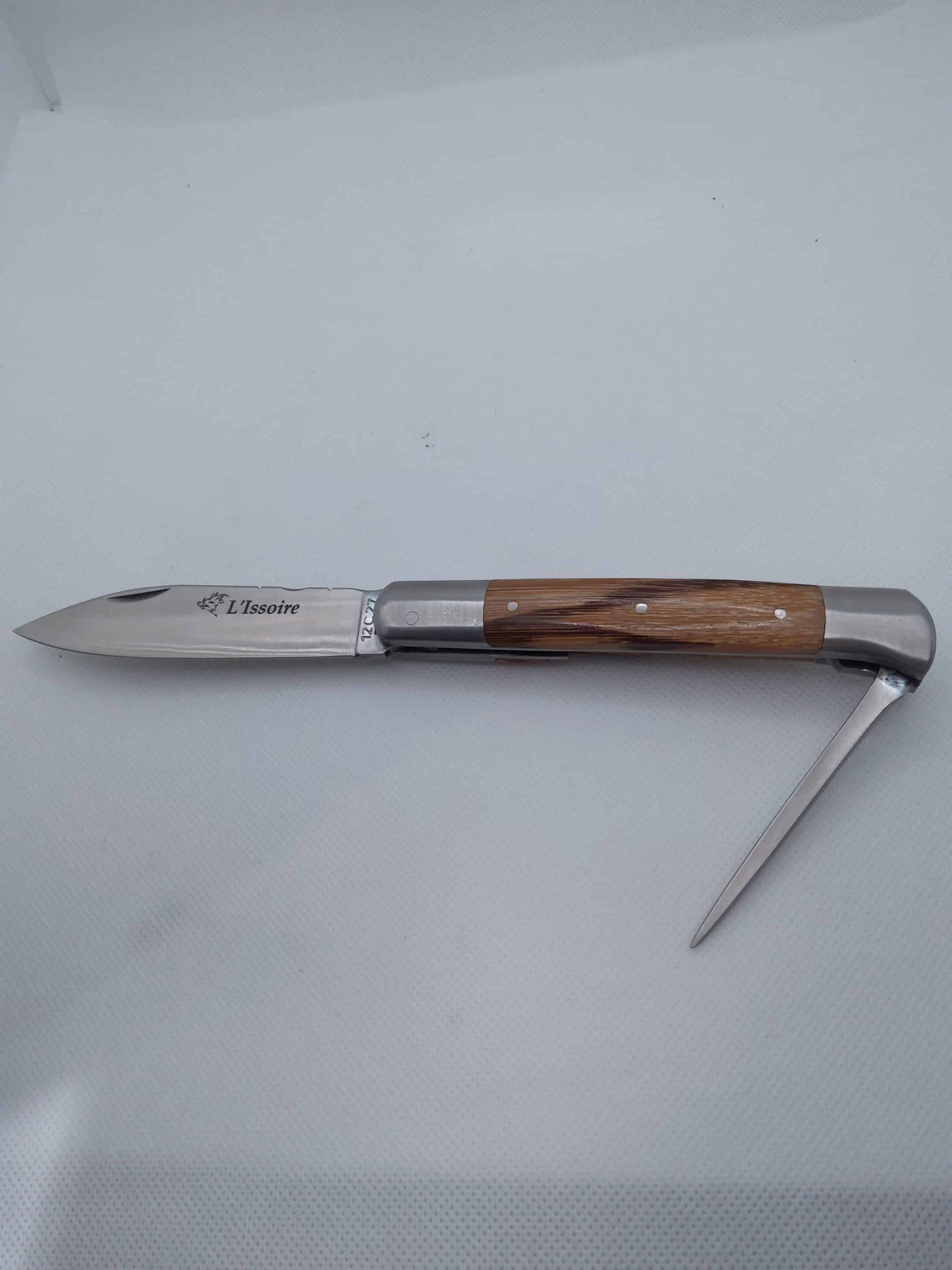 Élégant et authentique, ce couteau L’Issoire incarne la tradition coutelière française dans toute sa noblesse. Sa lame finement satinée, gravée du nom de la maison, offre une ligne pure et équilibrée, pensée pour une coupe précise et efficace.