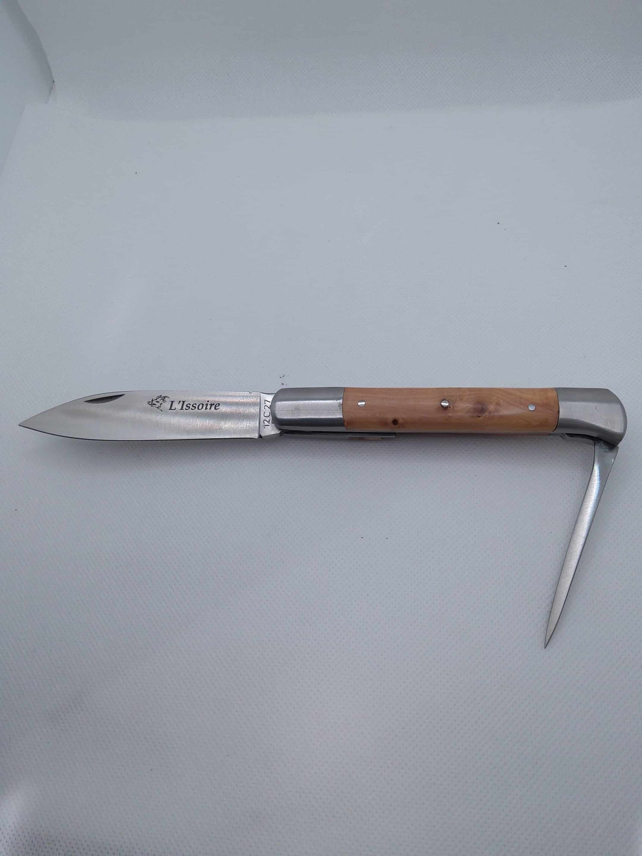Élégant et authentique, ce couteau L’Issoire incarne la tradition coutelière française dans toute sa noblesse. Sa lame finement satinée, gravée du nom de la maison, offre une ligne pure et équilibrée, pensée pour une coupe précise et efficace.