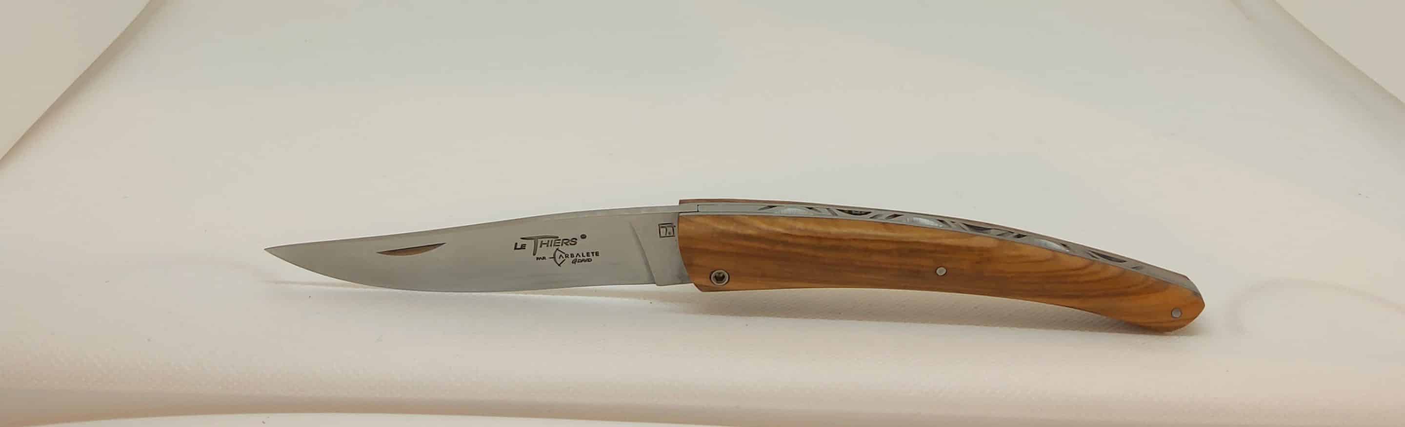 Ce Thiers Arbalète David de 12cm est monté avec un plein manche en olivier.