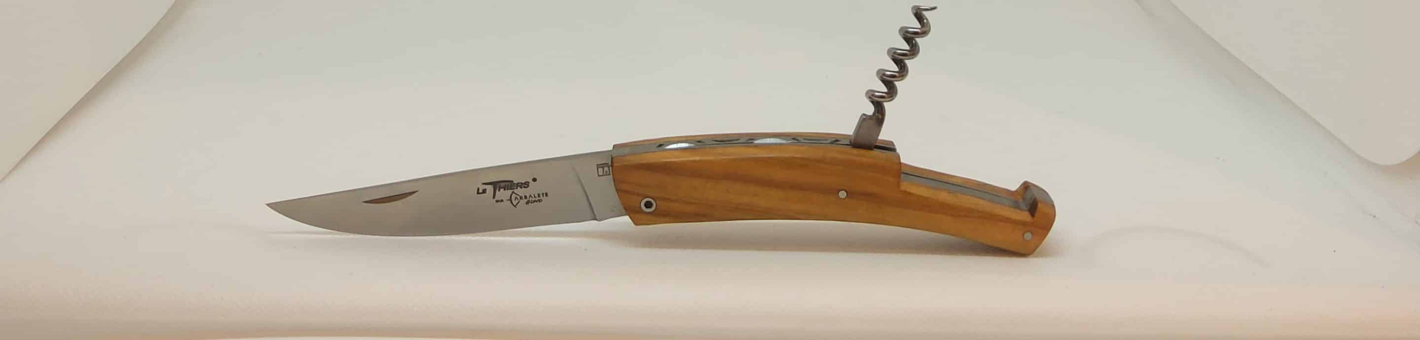 Le Thiers 12cm plein manche en olivier avec tire bouchon