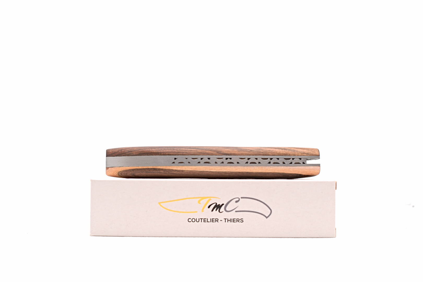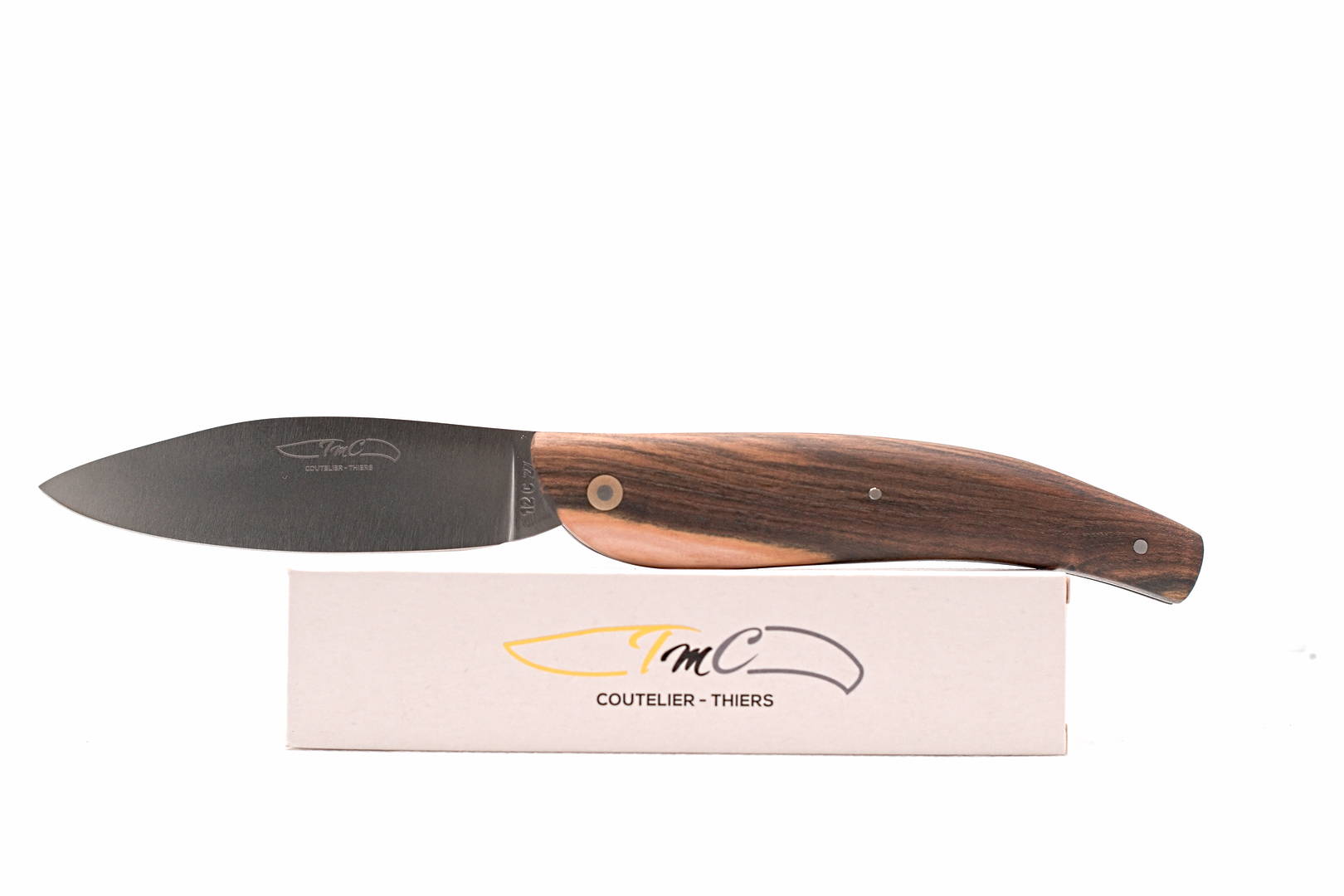 Tirant son inspiration de le Saint-Amans, une couteau régional produit à Thiers pour une clientèle paysanne résidant dans le sud du Massif Central, le 20-16® est un couteau qui tient bien dans la main et dans la poche. Sans aucun partie saillant une fois repliée, il ne trou pas vos poches. Couteau de 12cm fermé, 20.5cm ouvert, avec une poids d’environ 90g. Lame en acier inox 12C27 brossée, montée avec une rosette laiton. Ressort guilloché.
